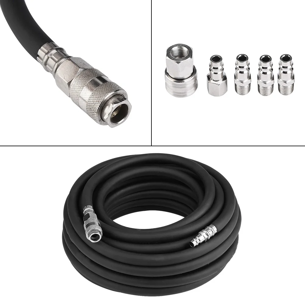 15M Flexible Rubber Pneumatic Air Hose with 5‑Piece Compressor Accessory Kit Tool