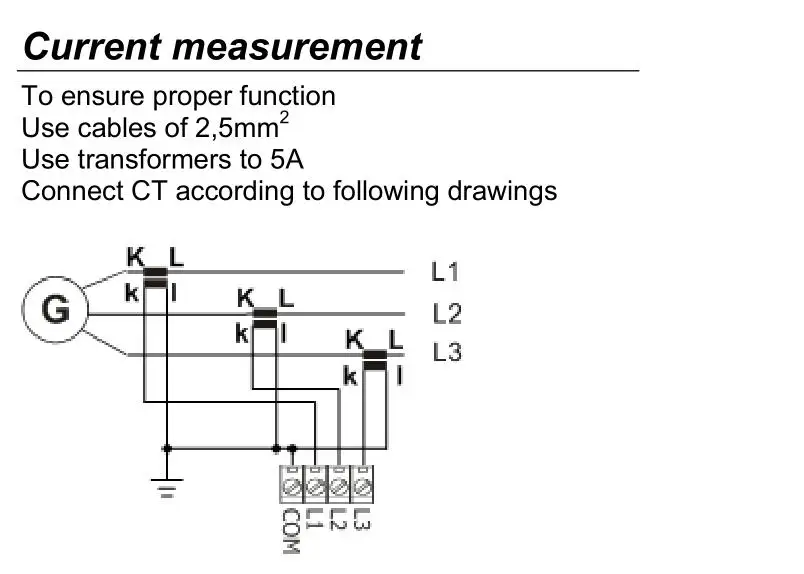 Connect CT according to following drawings. Terminals L2l and L3l are opened.